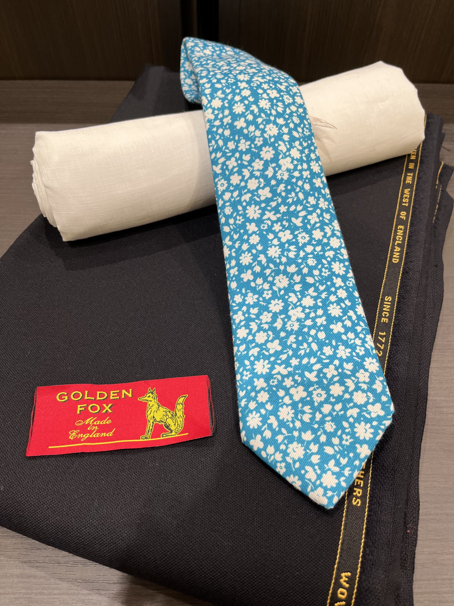 シャツにはリネンを、タイはシルク/コットンのタイを持ってきました。