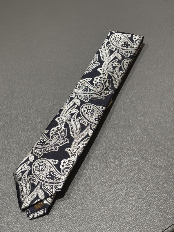 それでは、一つ目が黒がベースのペイズリー柄のネクタイです!