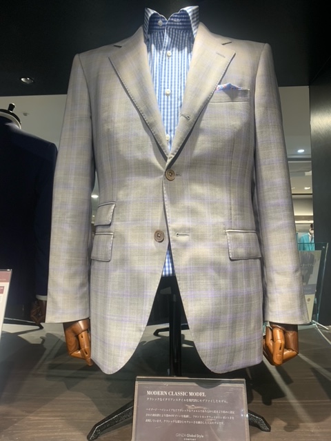 両者とも、クラシックな印象のチェンジポケットの付いたジャケットに現代的なノータイスタイルが取られています。