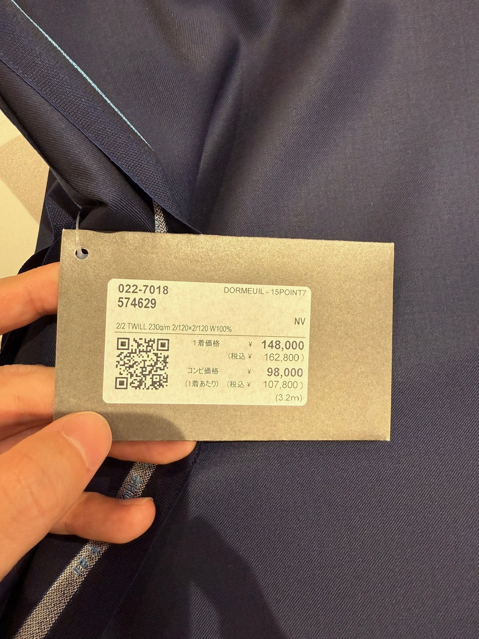 店頭で仕入れたこの生地はなんとコンビ価格で98,000+税