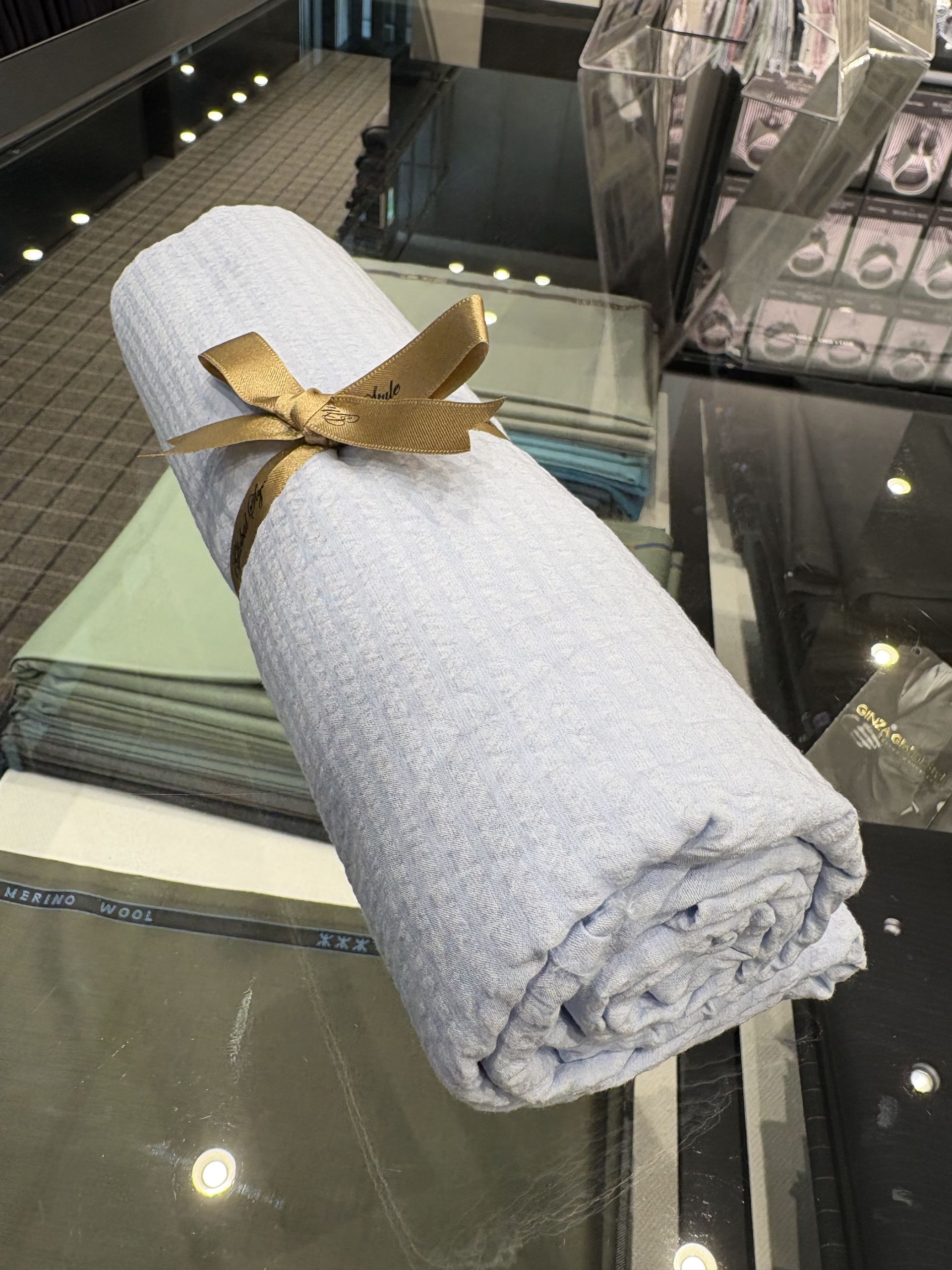 アルビニのシアサッカーは、軽やかで柔らかく、肌離れの良さが際立ちます。