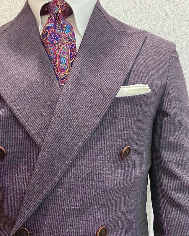 上下共のスーツとして着るなら、パープルがおすすめ。