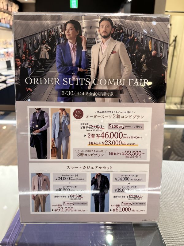 スーツ2着購入で合計金額から2000円お値引が入ります。