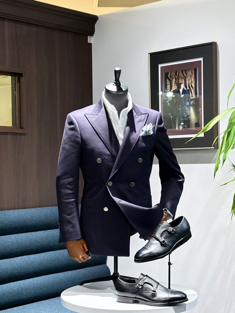 ダブルブレザーはクラシカルで、リラックスフィットでお仕立てすることでトレンド性も演出できます〇