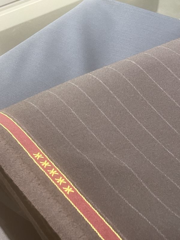 ブラウンのスーツは初めて作るのと、幅広いストライプも挑戦したことがないので