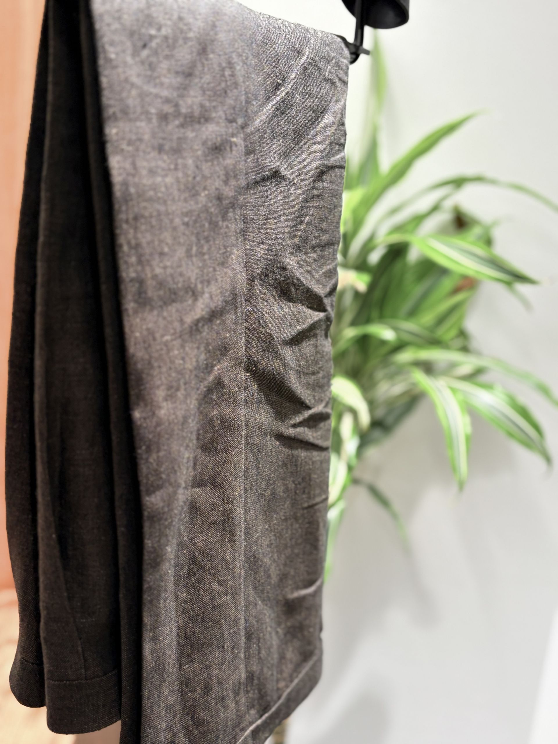 リネン独特の風合いがたまりませんね!こちらの生地も肉厚なのですが、これからもっと柔らかくなり綺麗なドレープが出てきそうです。