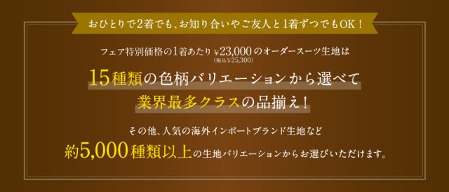 今回のフェアの内容は、2着スーツご購入により2000円OFFクーポンをプレゼントしております。