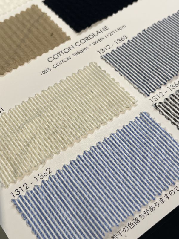 パンツは薄いベージュのコードレーンのコットンパンツ。