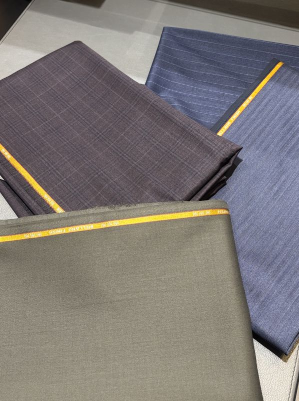 こちらはウール、ポリエステル混紡の生地ですが、光沢加工している為、まるでウール100%やシルクを思わせる上品な光沢感が魅力の一つです!!しかも、コスパもいいためオーダースーツ初心者の方でも挑戦しやすいお値段となっております!!