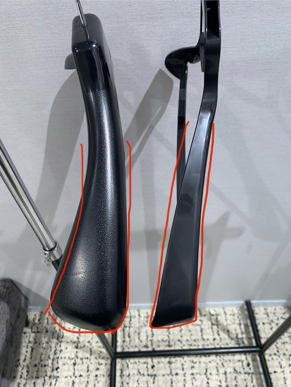 ジャケットの肩部分は、前肩設計になっているのが多いので直線に近いハンガーだと合いません。