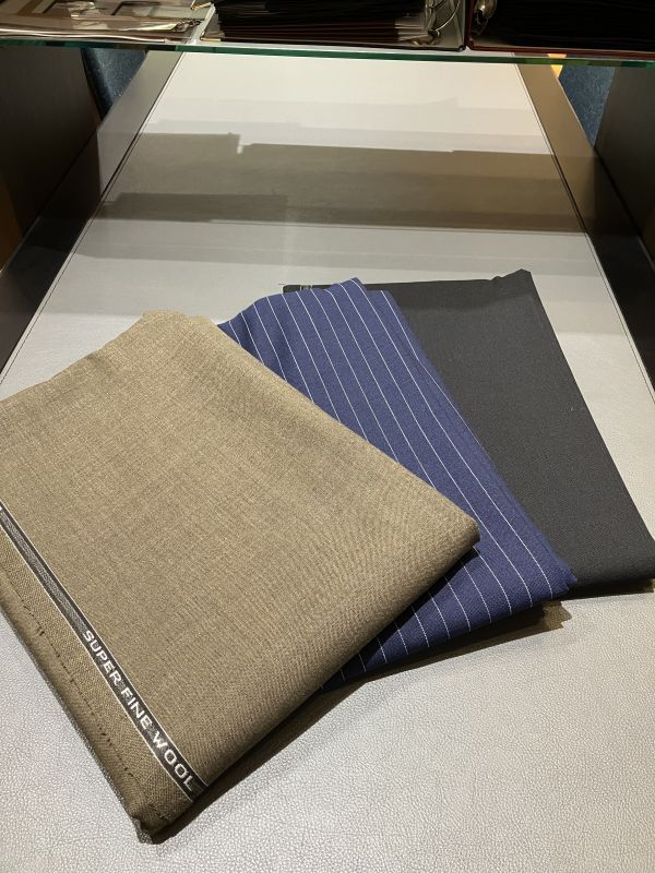写真3種類の生地は、お好みの生地2着以上で注文の際は1着あたり49,000+税~ご案内可能です。