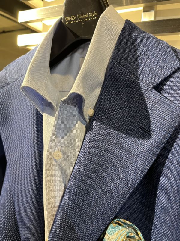 第1釦が通常よりも低く設定されている為に、ノーネクタイで第1釦を外しても