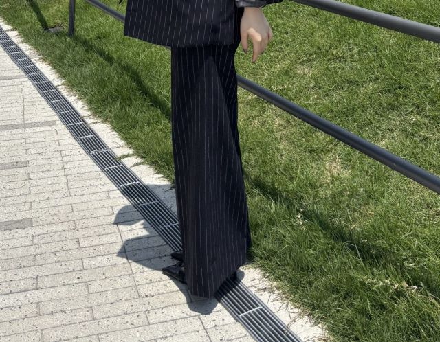 ワイドパンツは長めな股下丈が今っぽいですね^^
