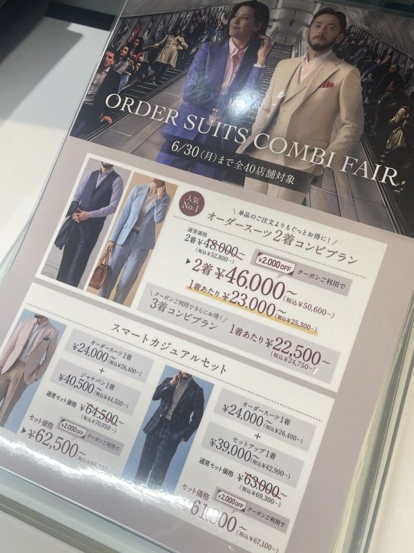 オーダースーツ2着以上のご購入とLINEの友達追加で2000円OFFクーポンがご利用いただけます✨