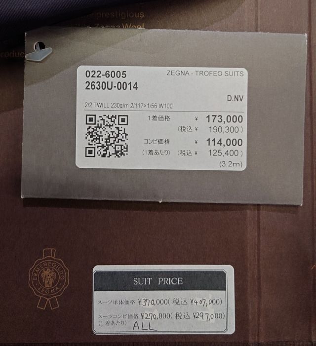 グローバルスタイルでは一着価格で約20万円を切るくらい、さらに二着購入で一着当たり下のコンビ価格(画像上の価格)になるので約12万前後ととてもお得です
