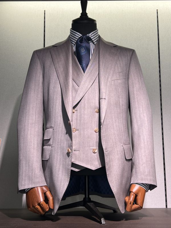 ベストを着用する際には、ジャケットボタンは全て外すことが基本となります。