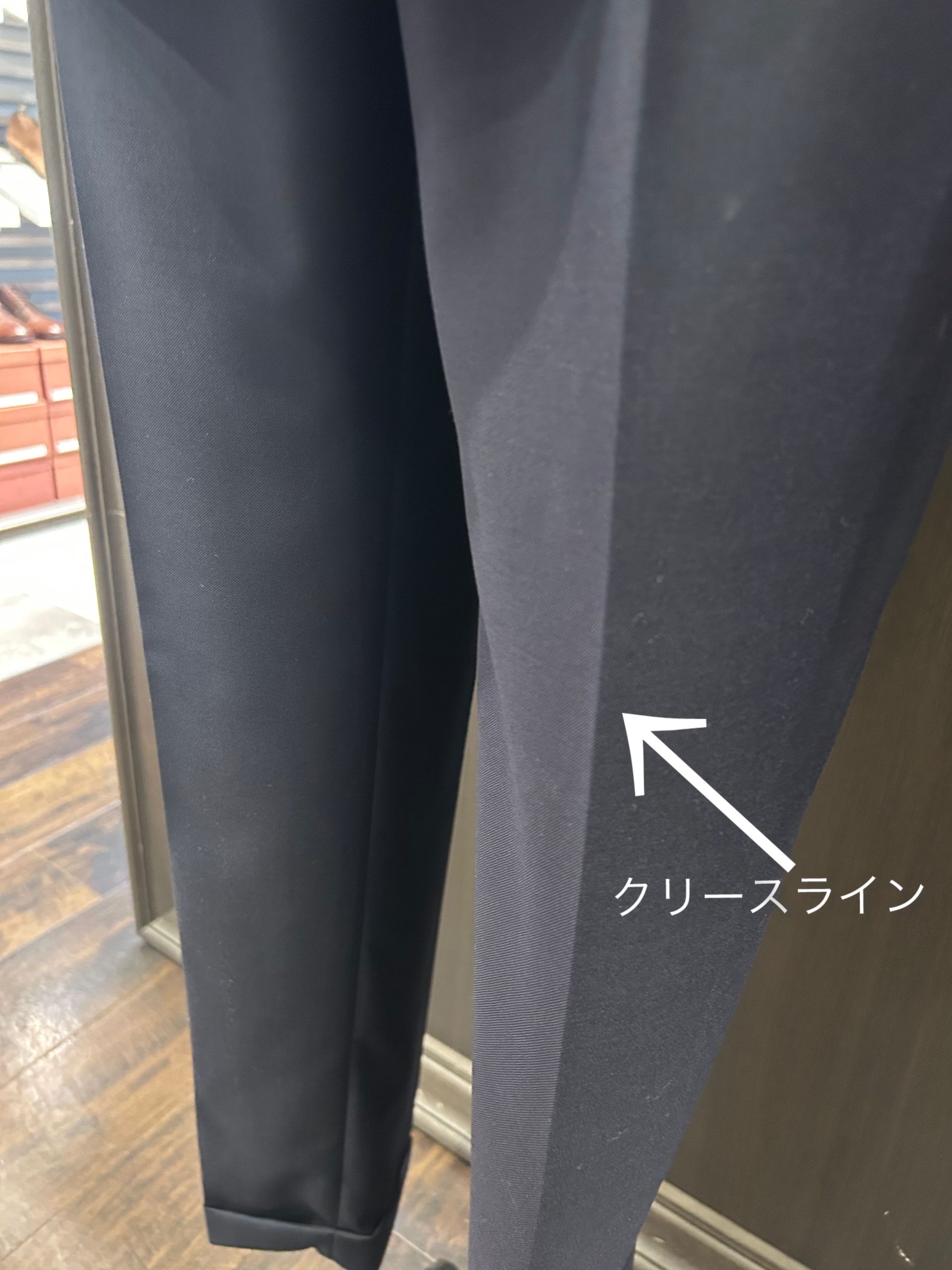 梅雨の時期を乗り越えた私のスーツのパンツはクリースラインがとれ、ボロボロ状態になってしまいました。