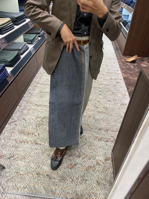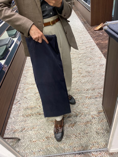 ちなみに昨年はこちらのベージュのチェックパンツを仕立てました。