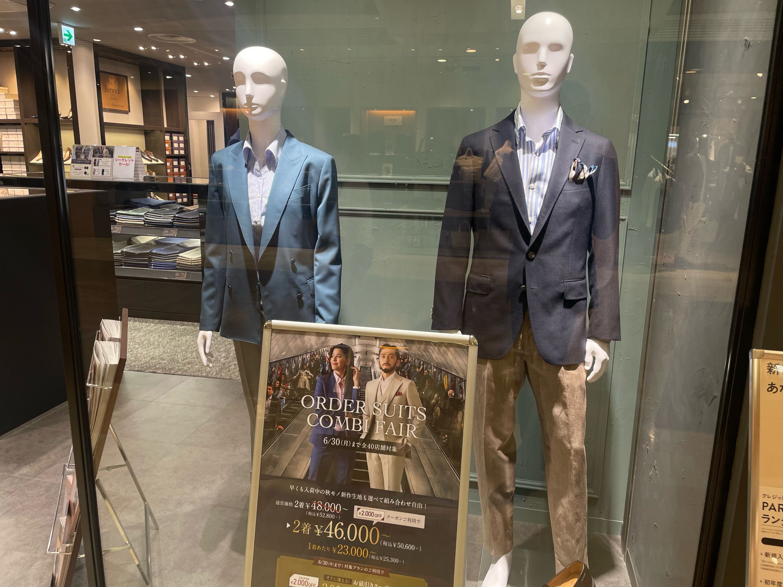店頭のマネキンは夏らしい爽やかなジャケパンスタイルになりました。
