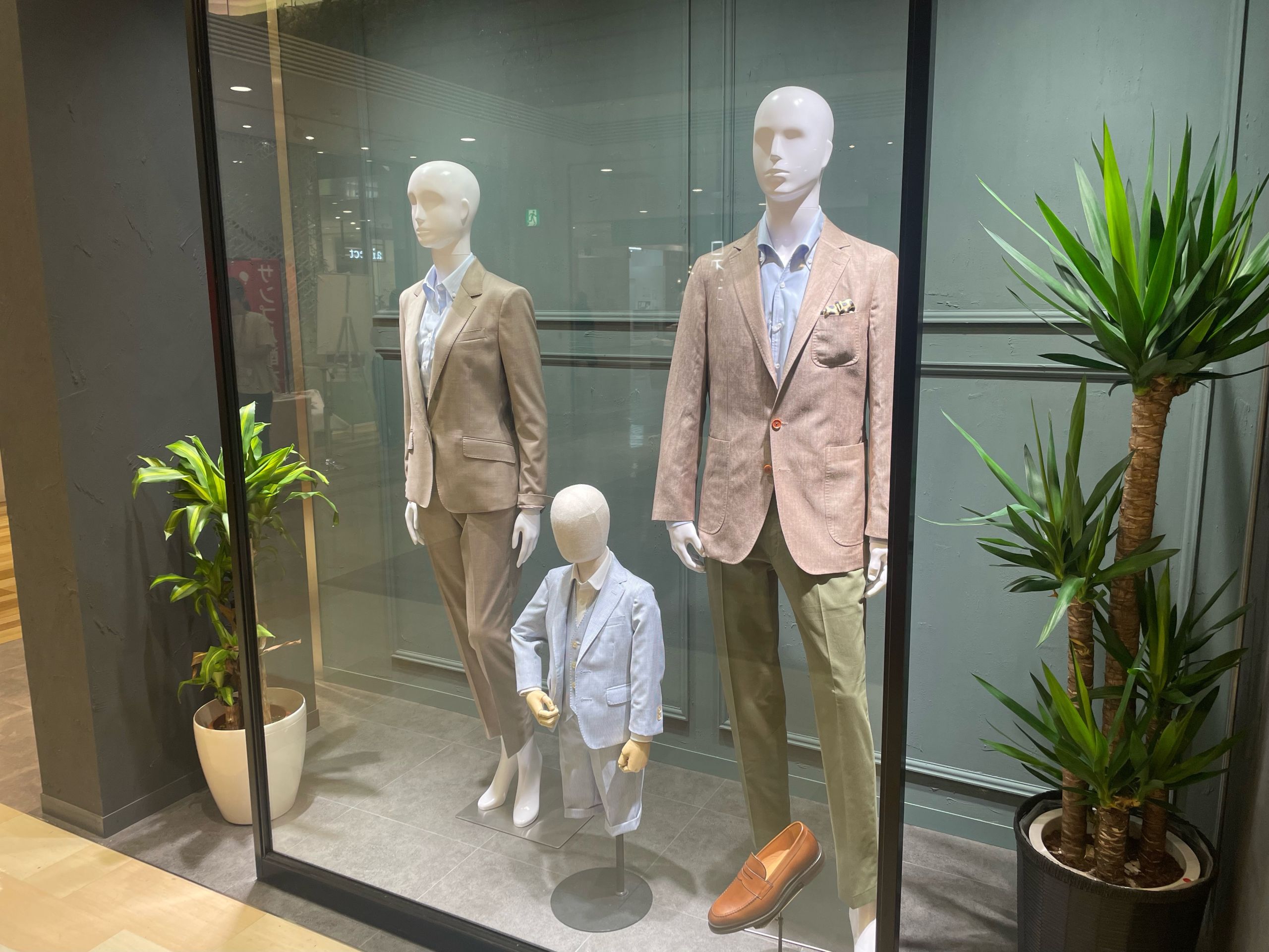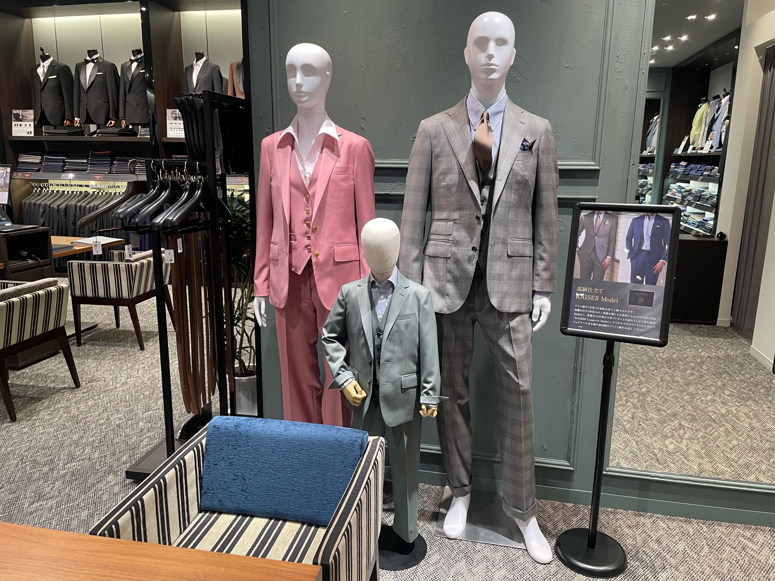 キッズ用のスーツを見て、店頭の前を通る方によく「かわいい(笑)」と言っていただけます。