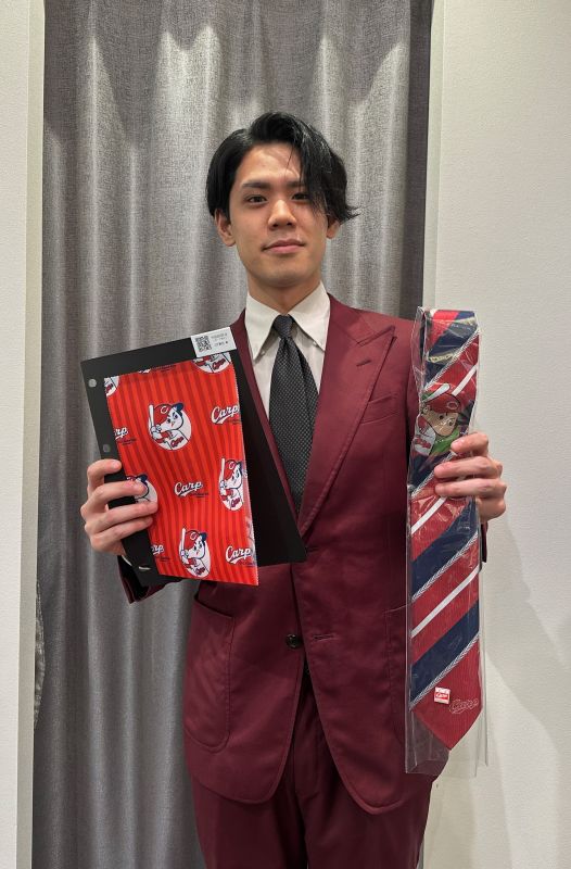 ネクタイに続きスーツの裏地にカープ坊やが登場です!!