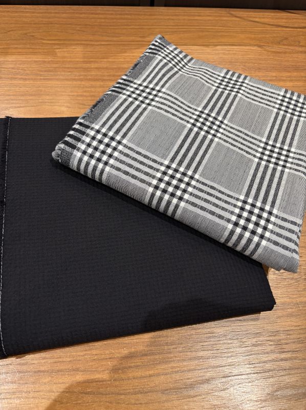 シックな色合いですが、着用感や生地の表情は夏らしく快適です!!