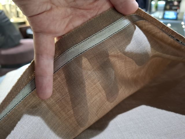 ご紹介のモノは、少し透け感のあるベージュ系のトロピカル生地です。