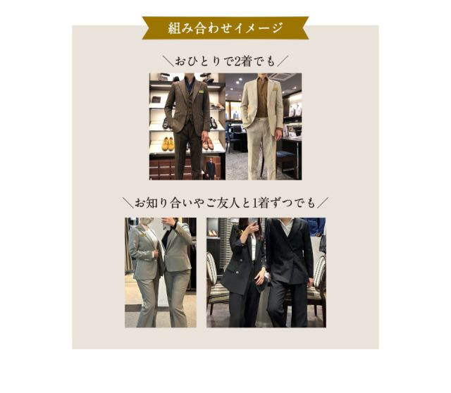 スーツ2着や、スーツとジャケパンで2着などセットで買っていただくと、、、