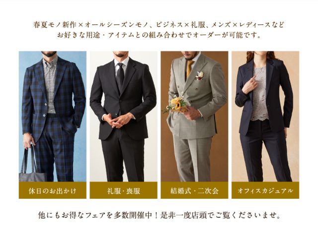 スーツの組み合わせも、お仕事用だけでなく、結婚式用やカジュアル用などと組み合わせて頂くことも可能です!!