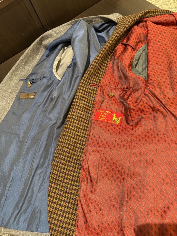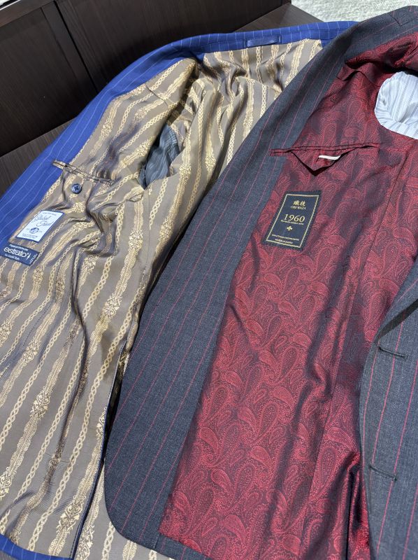 今日は、店内にあるプロット(見本スーツ)の裏地を一部ご紹介。
