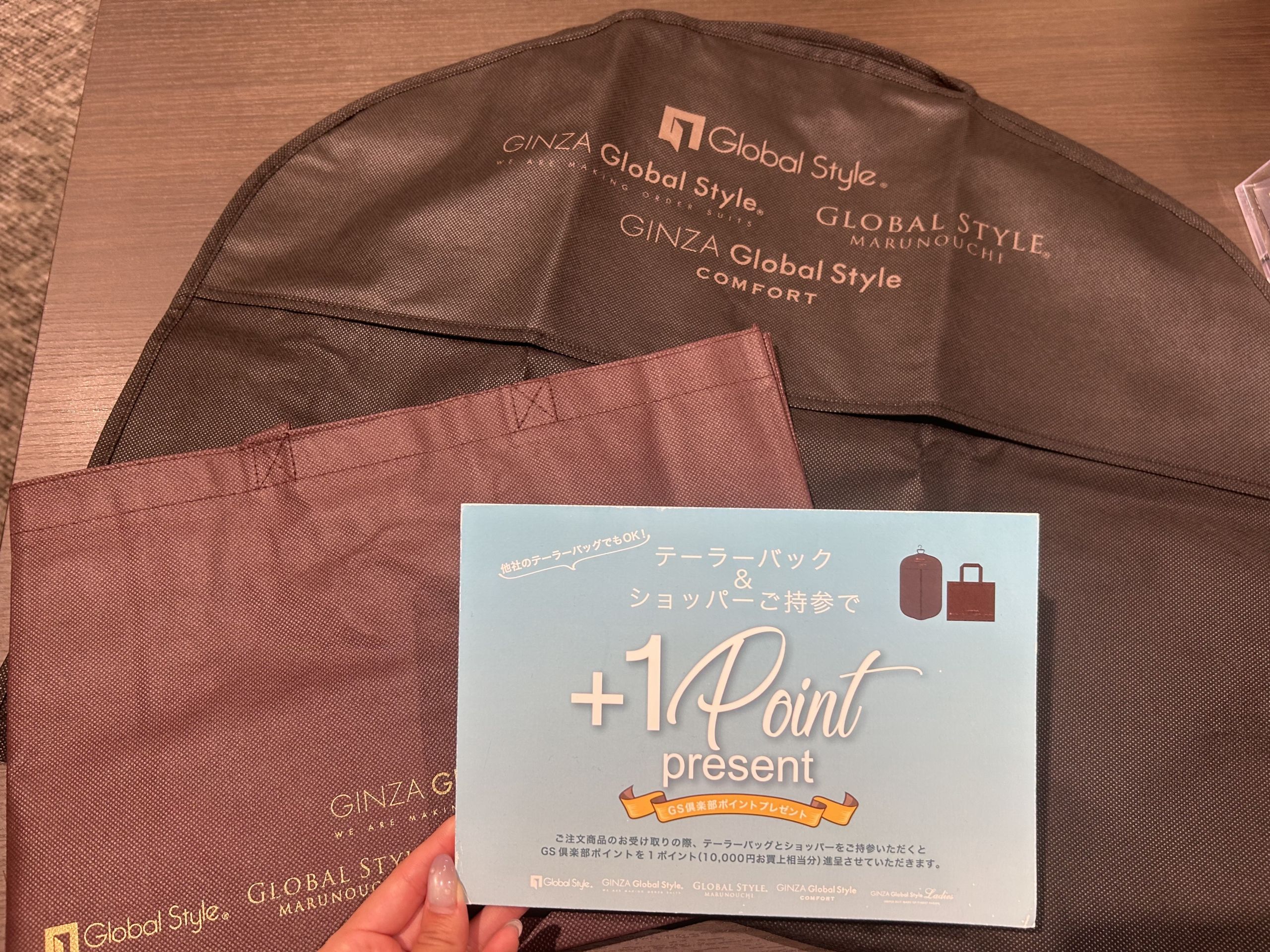 実は、テーラーバックとショッパーをご持参いただきますと1Pointお付けしております!!