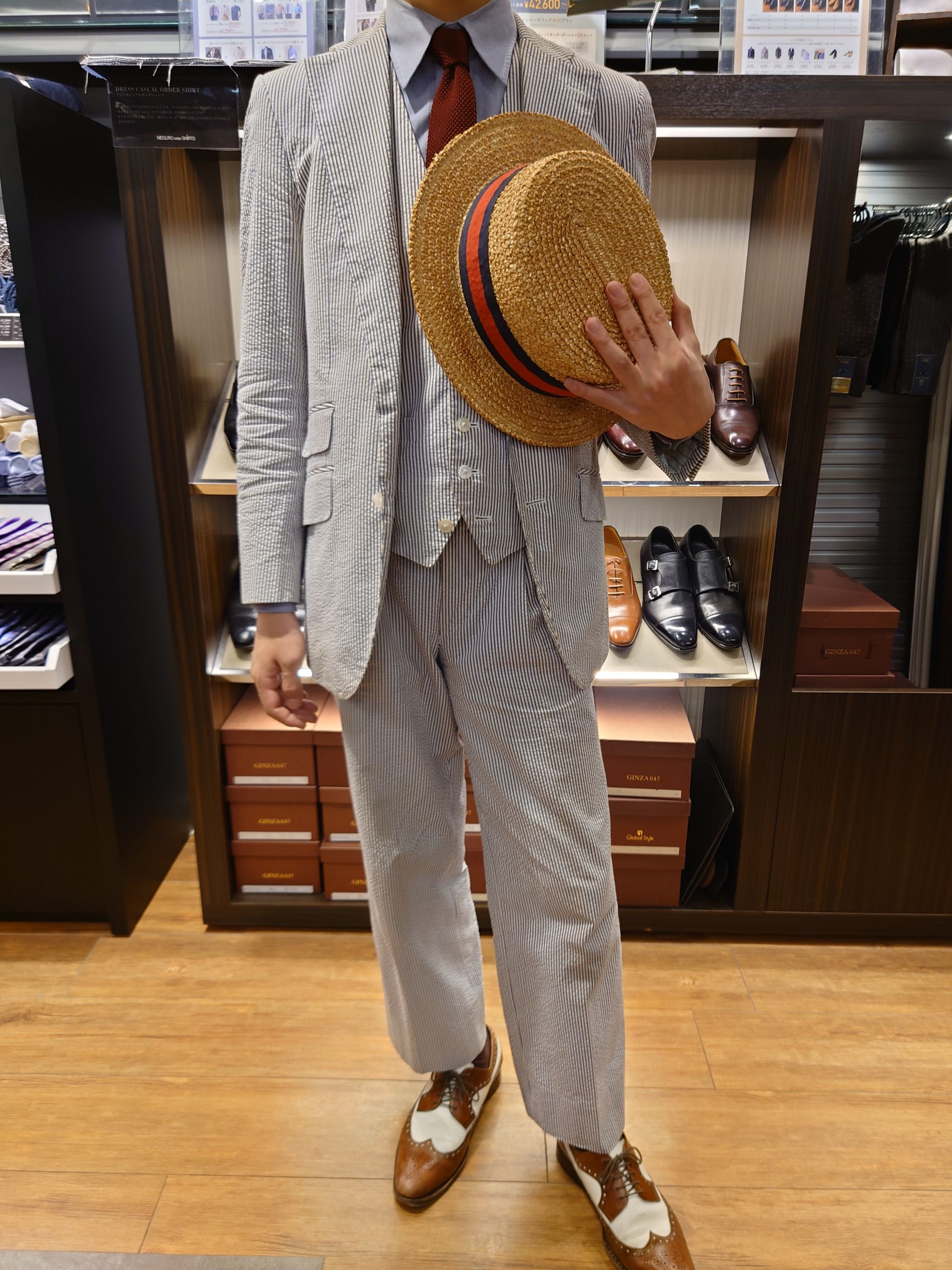 少し前にカンカン帽を購入しまして、相性の良さそうな生地でスーツを仕立てました。