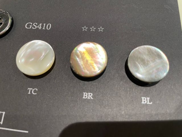 既製品でなかなか見ることのない、本水牛釦やナット釦、メタル釦など、