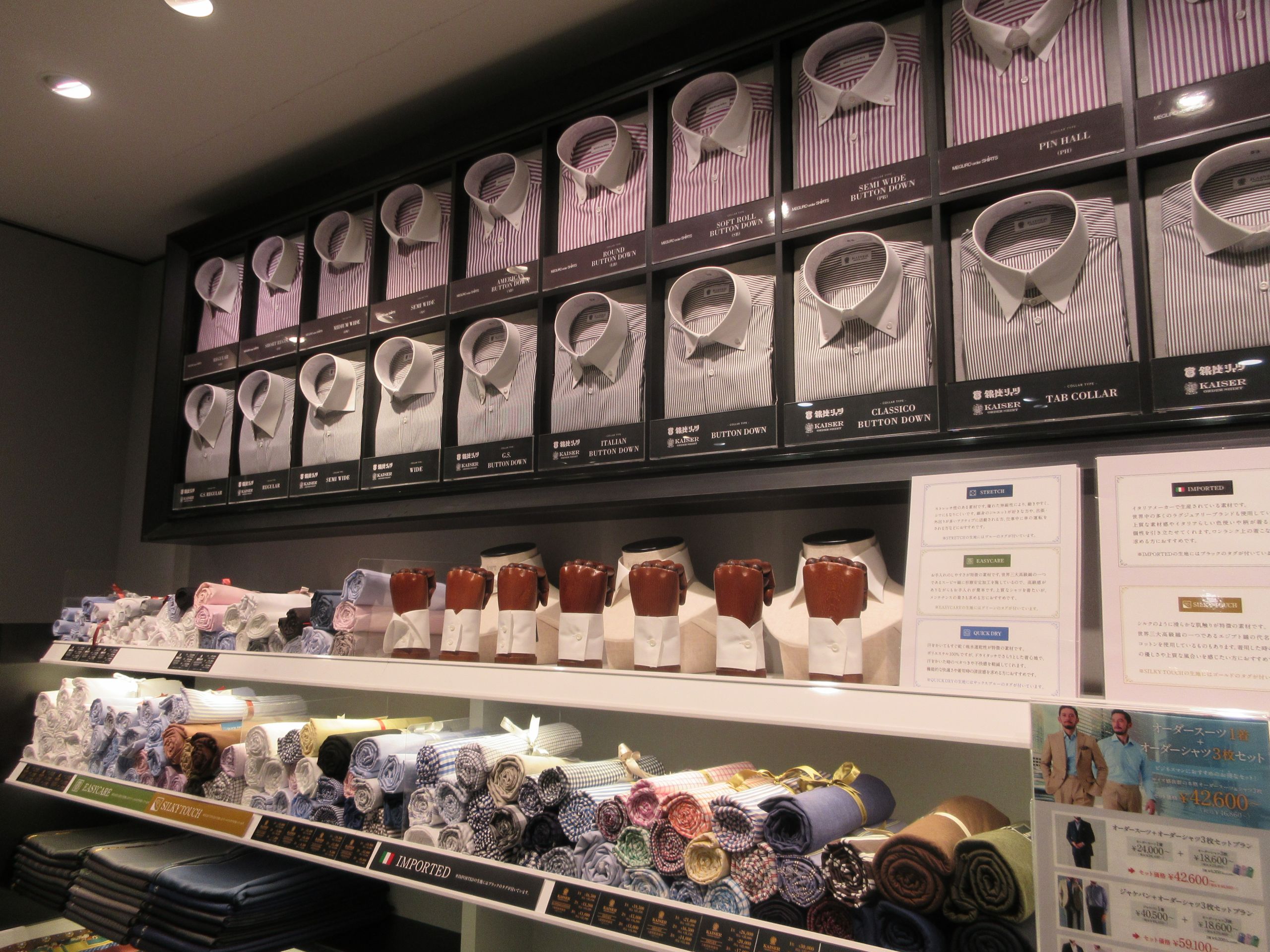 オーダーであれば体にあったサイズ感のシャツをご用意ができます。