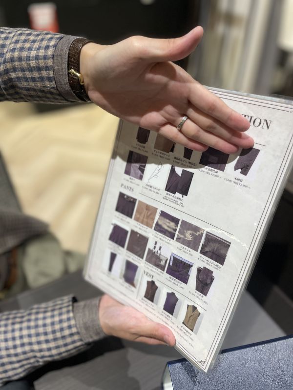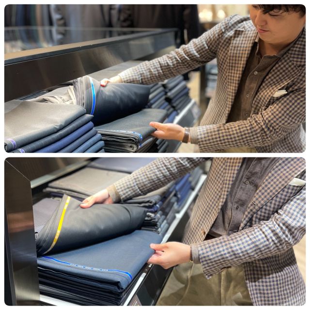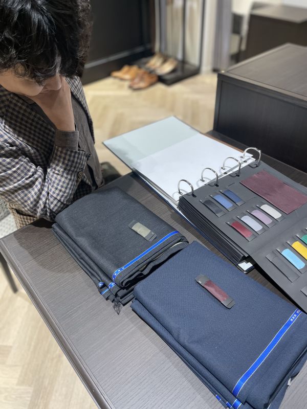 片山店長は生地やスーツに対しての知識がすごく、テーマを伝えると少し悩んで最適な生地を選んでくれました(*’ω’*)
