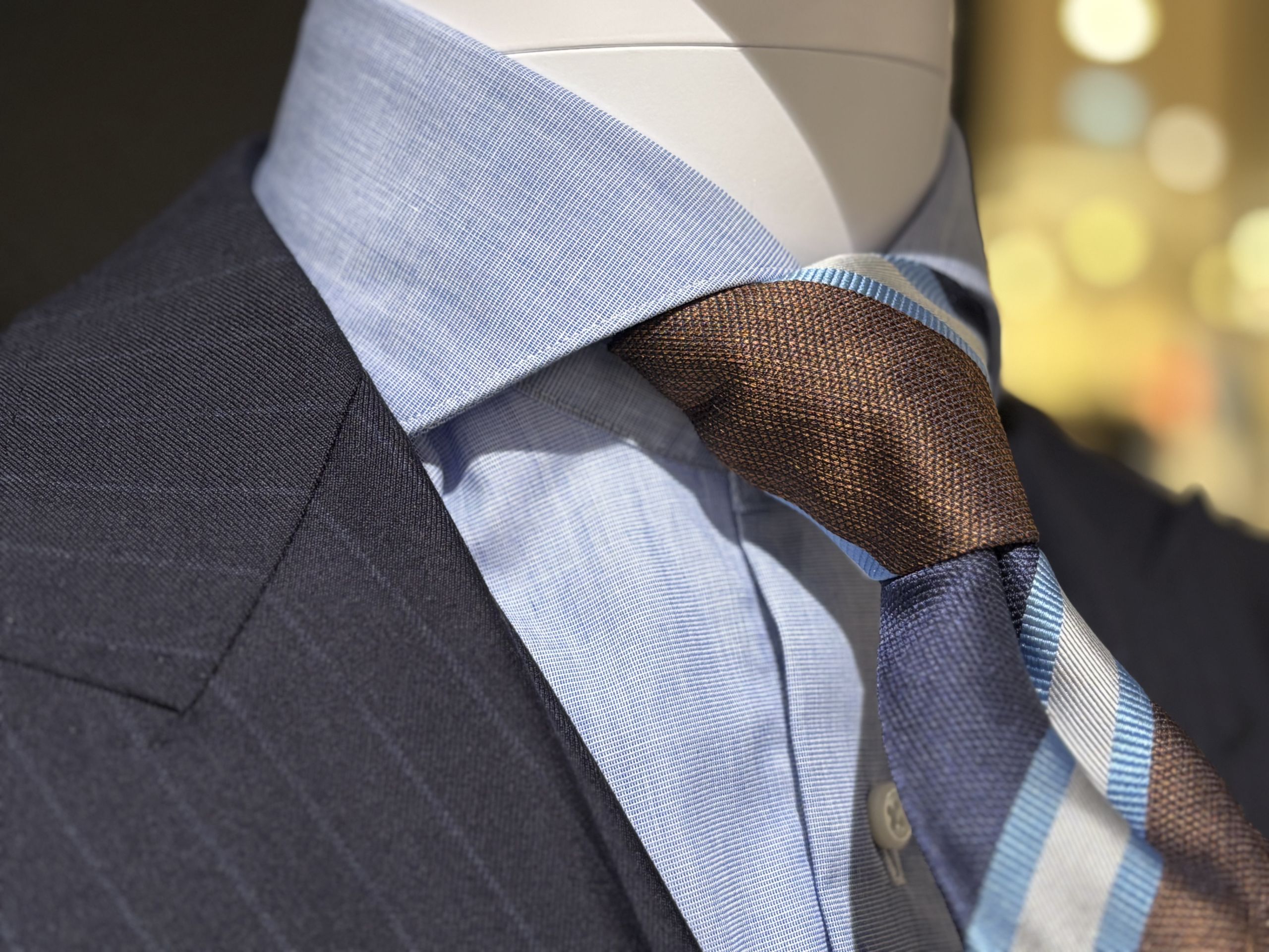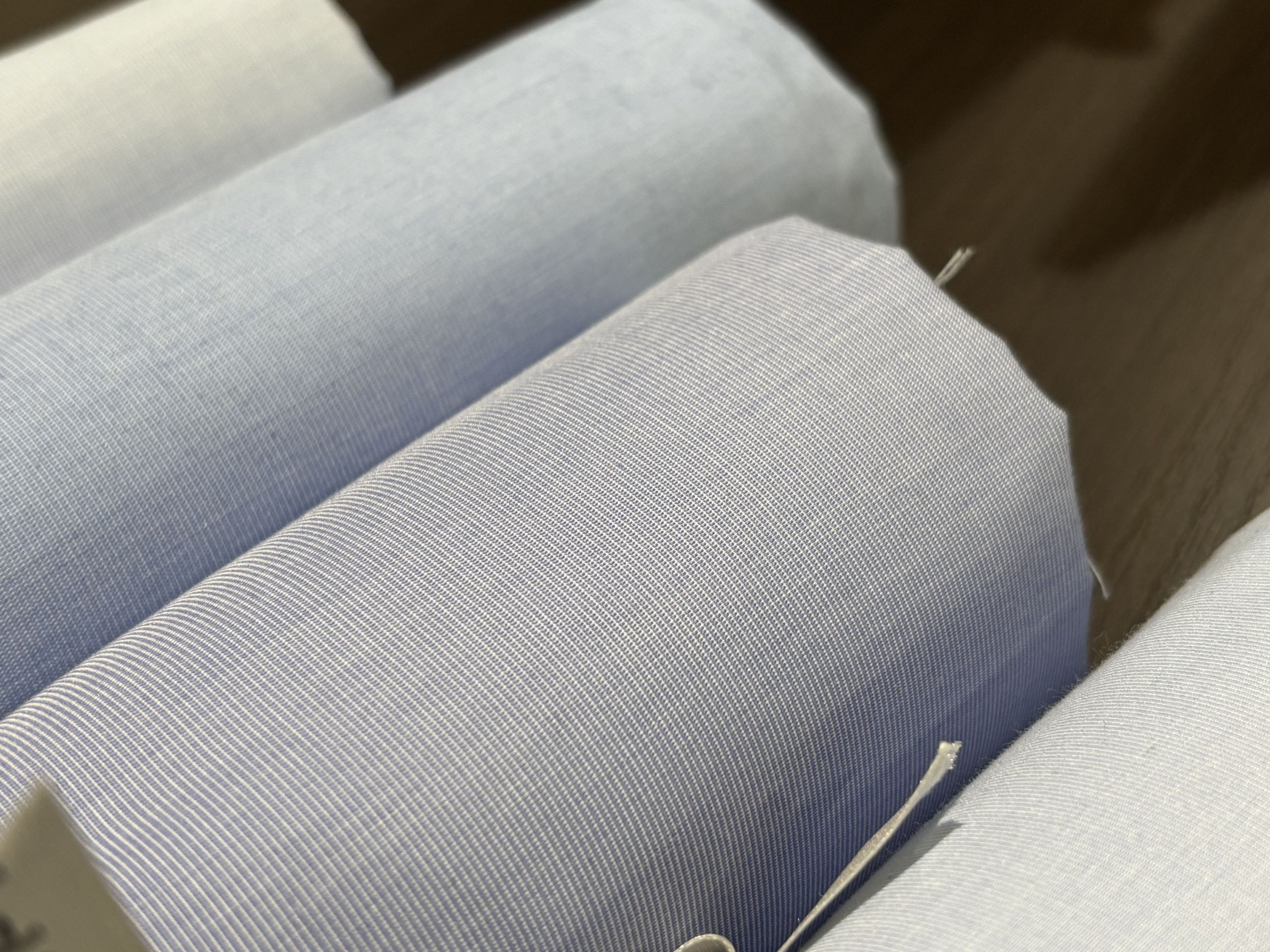 清涼感のある見た目から春夏のシャツに多くみられますが、これらの生地は遠目で見れば無地と見間違えるくらい目が細かいため、カジュアル過ぎずビジネスでオールシーズン着用いただける万能生地でもあります。