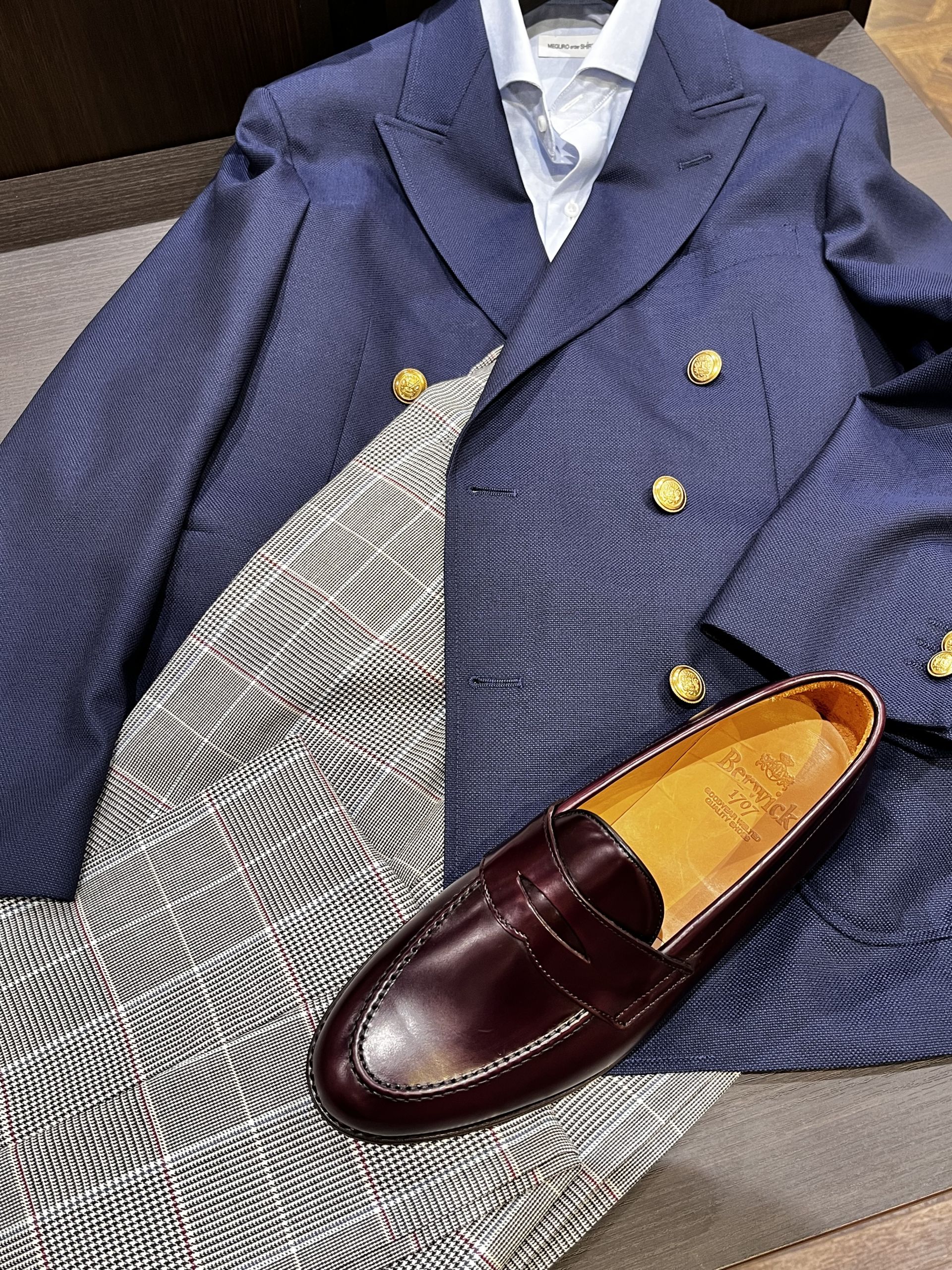 やはり、紺ブレにサックスブルーのシャツは何にでも合わせられる、万能アイテムですので1組は持っておくことをお勧めします。