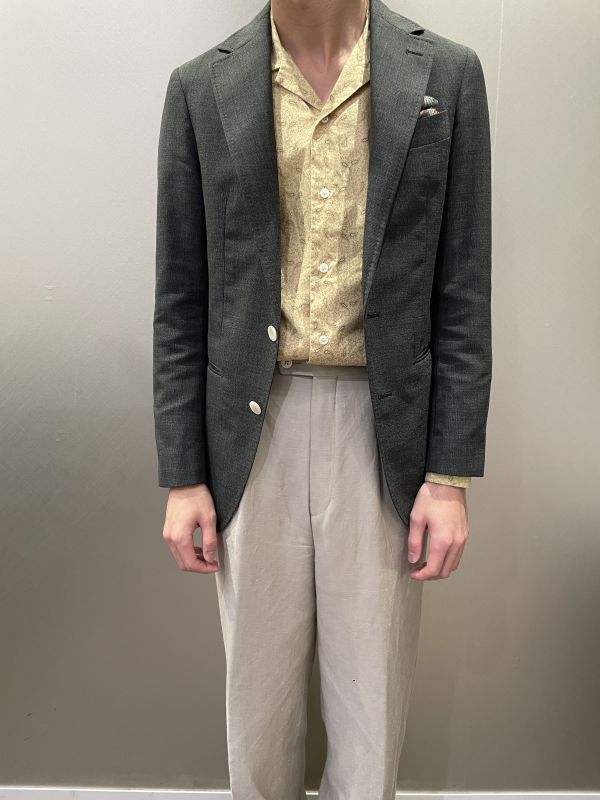 ジャケットのモデルは肩パッドが入っていないアンコンモデル