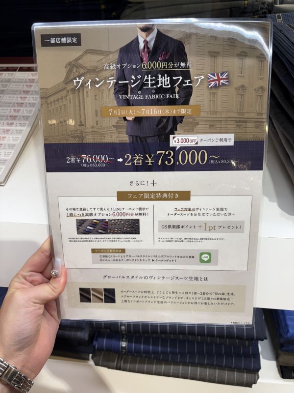 ブランド生地が通常よりもさらに手頃にお仕立ていただけて