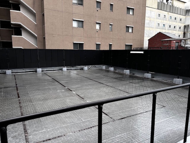 そして屋上に上がりますと日差しをふんだんに浴びれるような吹きっさらしの空間が広がっております。ここが駐輪場です。