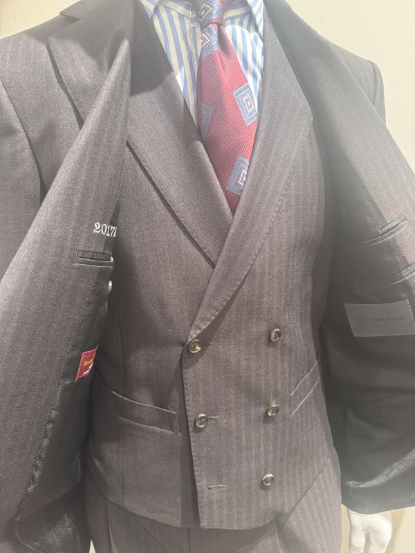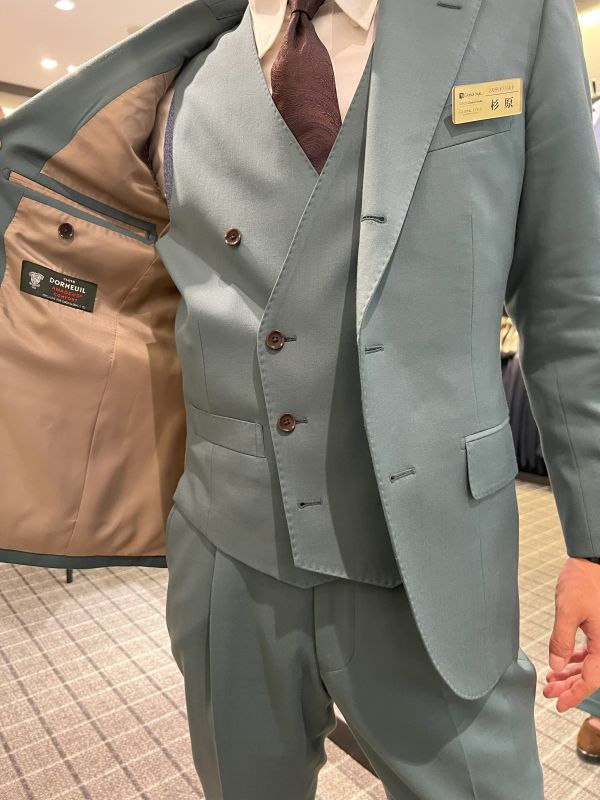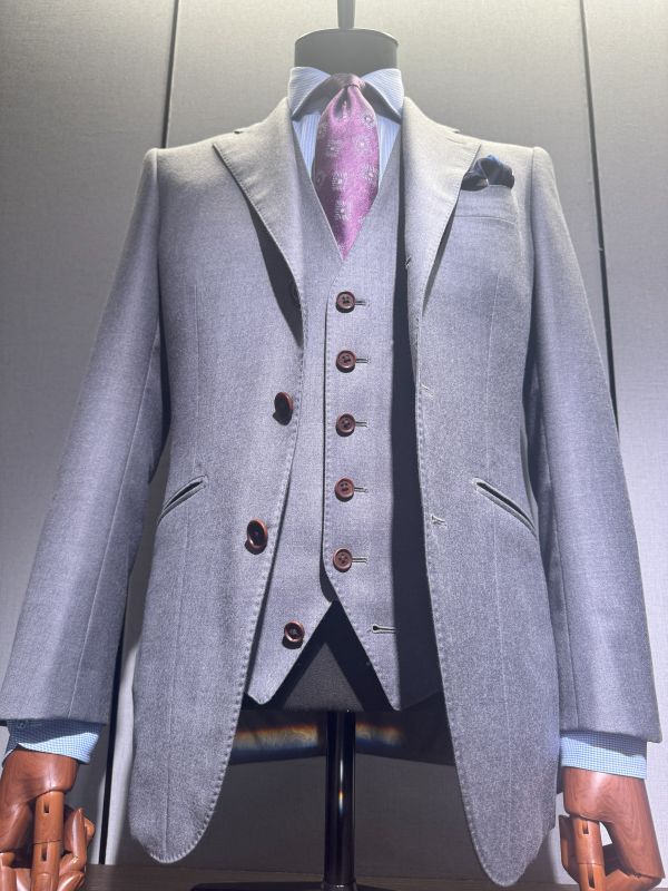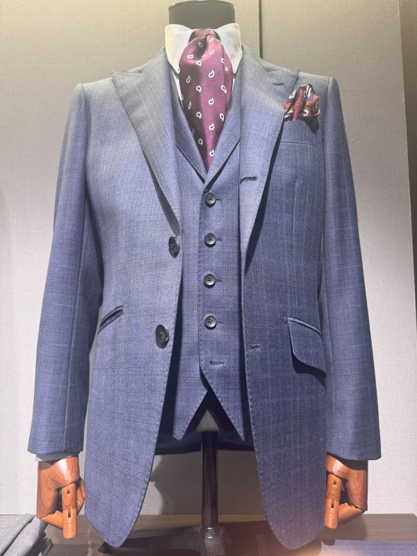 所謂、ジャケット、パンツ、ベストの同素材の生地で作る三つ揃えスタイルです。