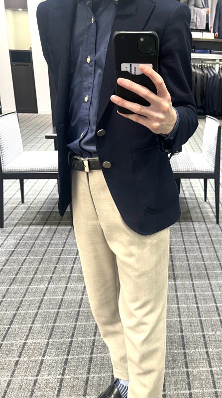特にネイビーのジャケット、いわゆる紺ブレ。こちらを1着持っておくとあらゆるパンツと組み合わせがしやすいと思います。