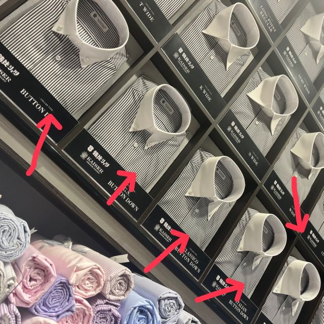 ボタンダウンでも衿の長さや、衿の長さによってこれだけの種類のご用意がございます。