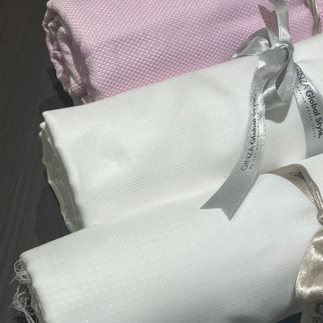 他にも、遠目では無地に見えるものの、近くで見ると織り柄が入っている生地もございます。