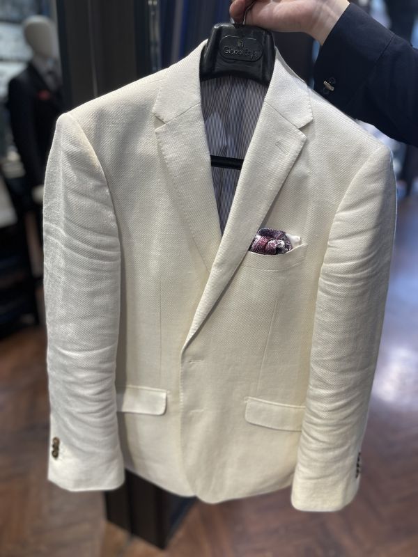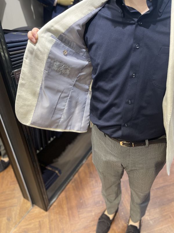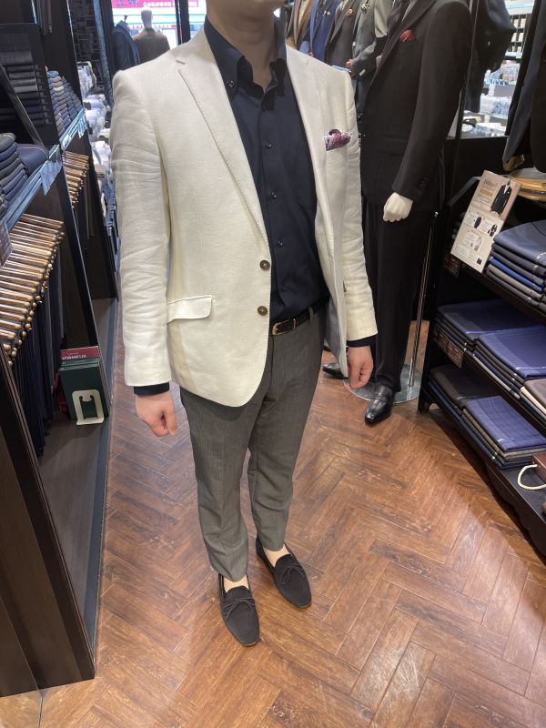 リネン×ウール棍紡のジャケットを主役にした爽やかなスタイル。