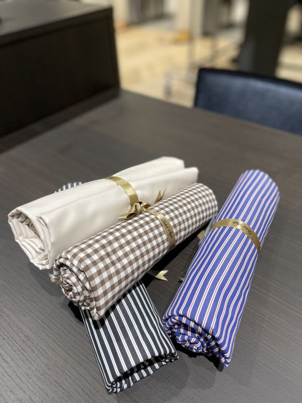私が仕立てたシャツもアルビニで通気性が良いので、この暑い中でも大汗をかくことなく通勤できています(笑)