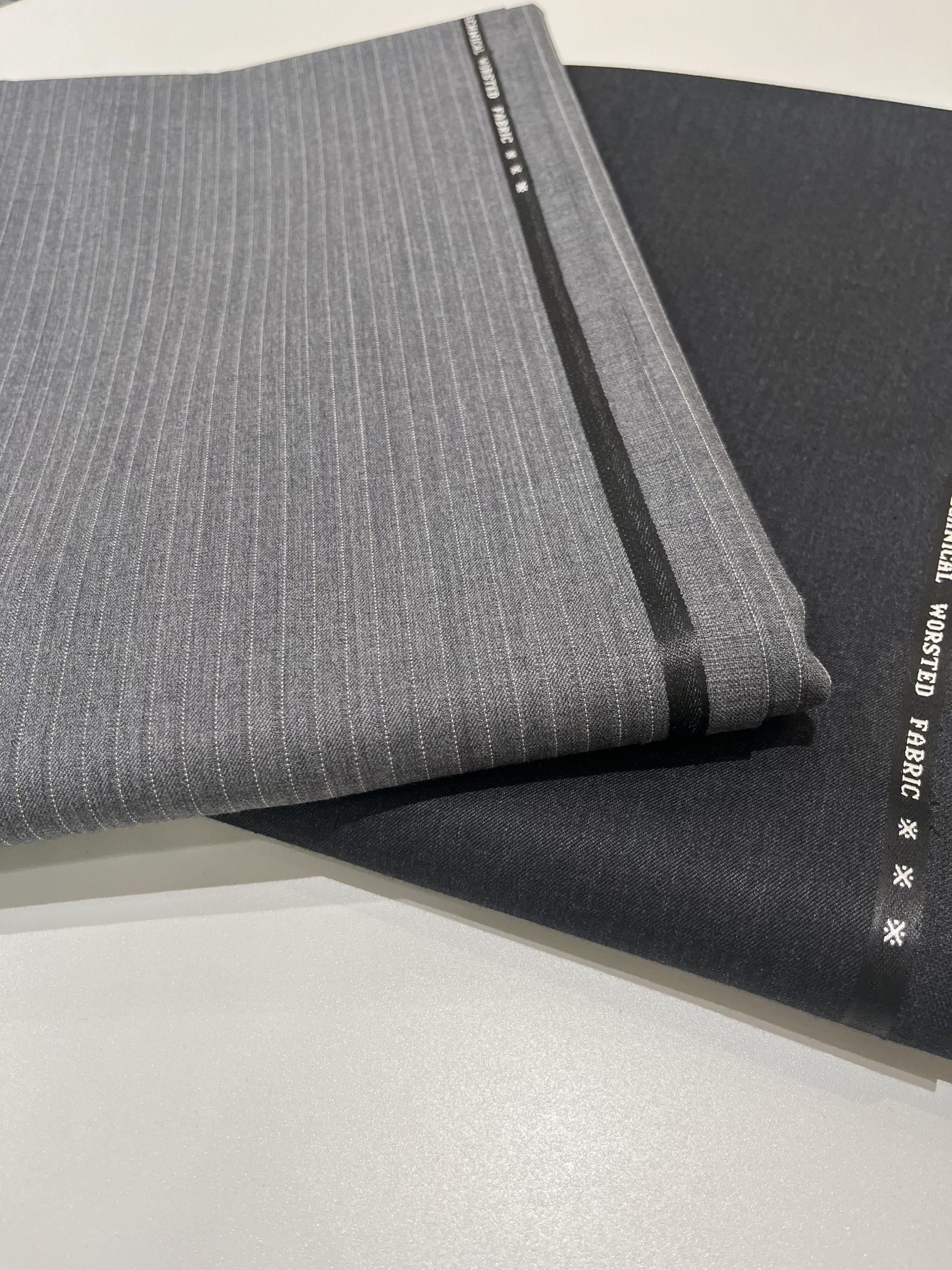 そして、気になるその金額帯の生地ですが、ビジネスシーンでお召し頂きやすい黒やグレー、ネイビー系を中心に常時15種類程度取り扱っております。