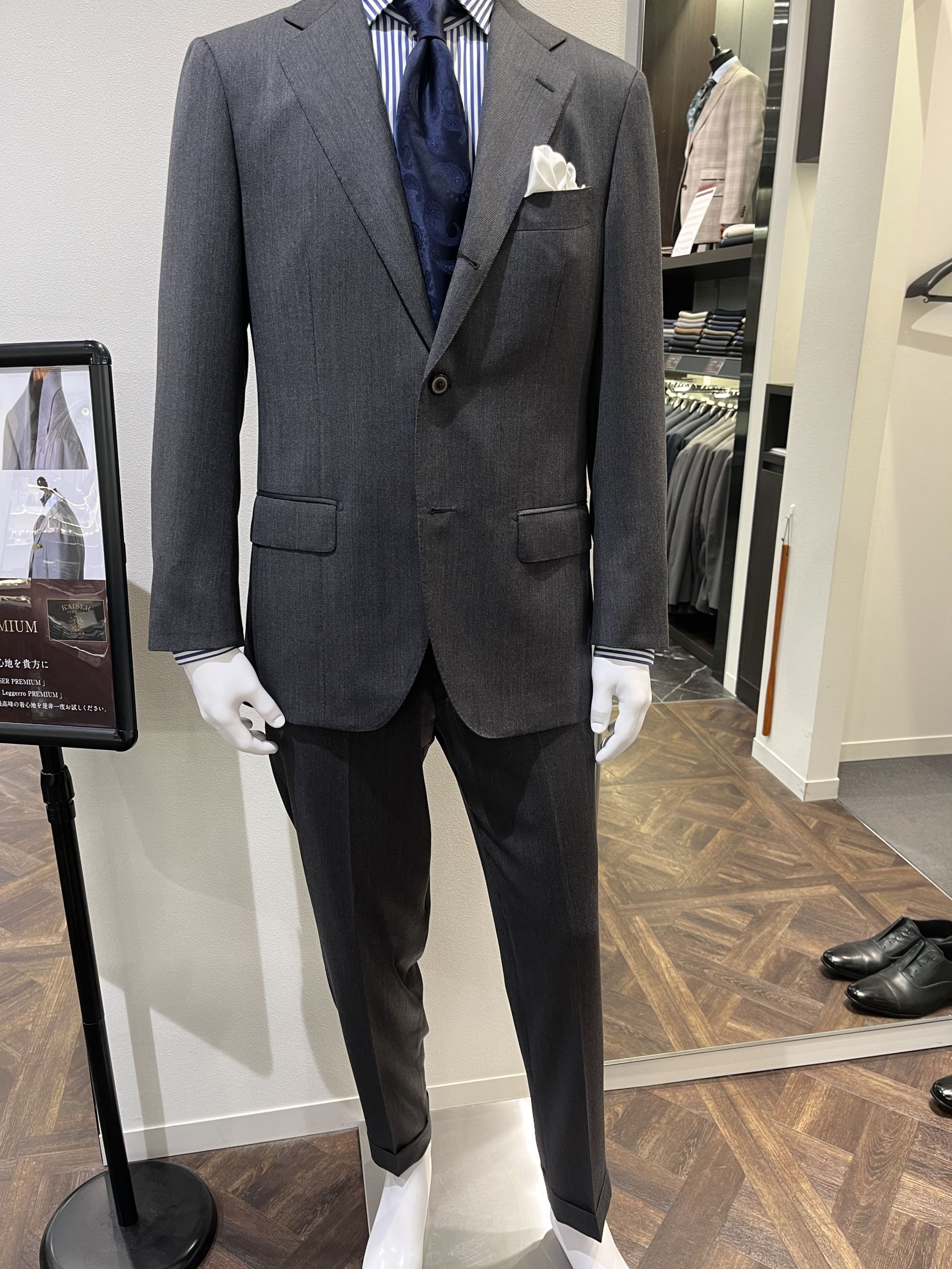 最後にグレー系です。グレーも濃いグレーから明るいグレーまで幅広く取り揃えております。また、グレースーツはそのスラックスをビジカジやオフィスカジュアルに着まわしやすい色味ですので、1着持っておくと洋服箪笥が温まりますので是非ご検討下さい。