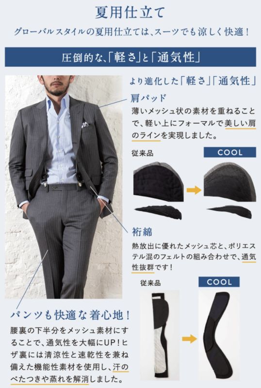 春夏向けの薄手で通気性のある生地をお選びいただくと