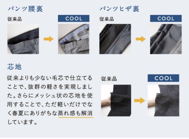 また、弊社ではパンツの裏地やジャケットの芯材仕様を